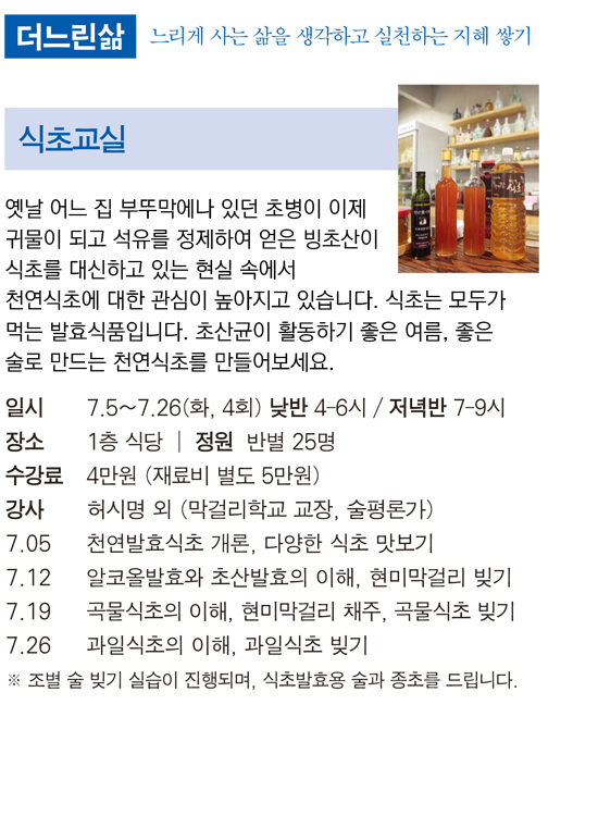 일시: 7.5~7.26 (화, 4회) 저녁 7-9시