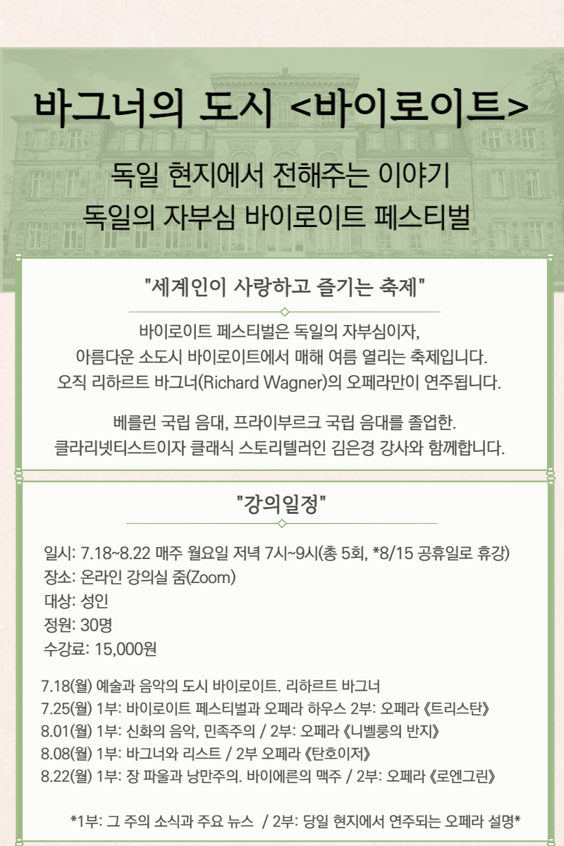 일시: 7.18~8.22(월, 5회) 19시~21시