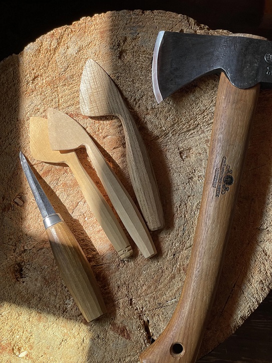 칼과, 도끼 그리고 손톱의 사용법과 버터나이프 만들기가 진행됩니다.