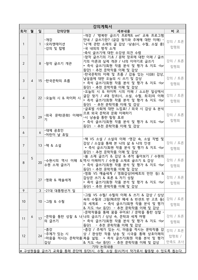 [오전반] 서종남교수의 문학아카데미 행복한 글쓰기 프로젝트 ON