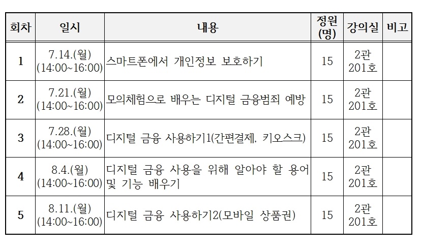 *교육대상 : 스마트폰을 다룰 줄 알지만 다양한 디지털 금융을 배우길 원하는 시니어 15명