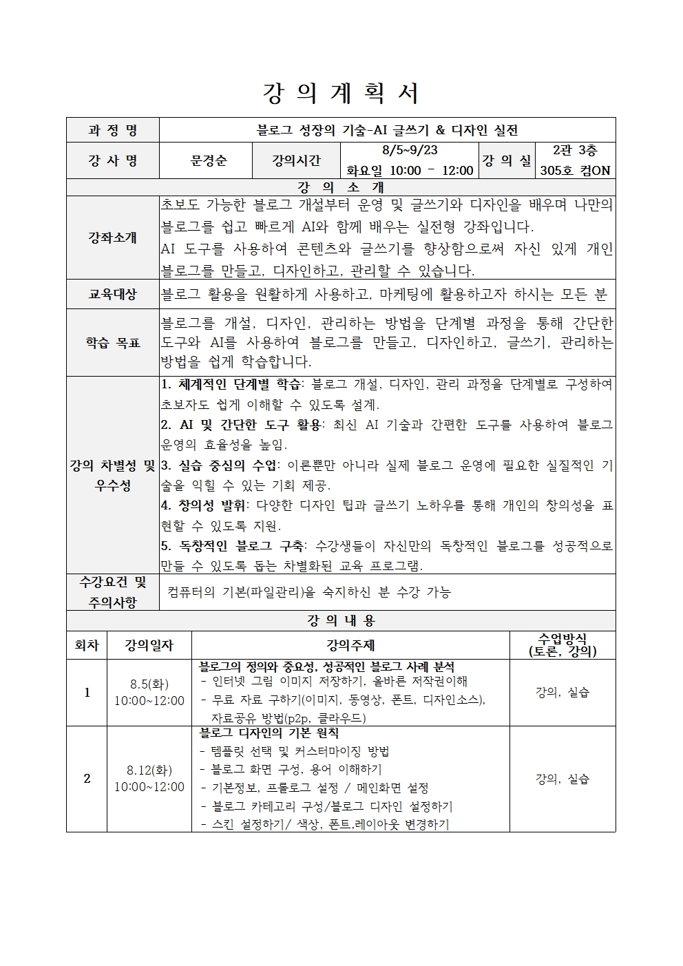 초보도 가능한 블로그 개설부터 운영 및 글쓰기와 디자인을 배우며 나만의 블로그를 쉽고 빠르게 AI와 함께 배우는 실전형 강좌입니다.