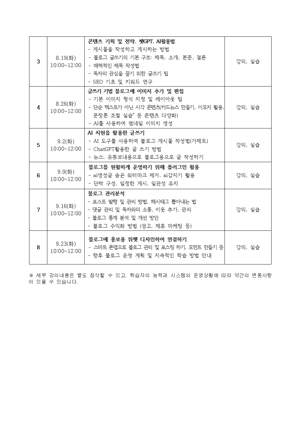 ■ 강의기간 : 25.8.5.~9.23. / 매주 화 총8회