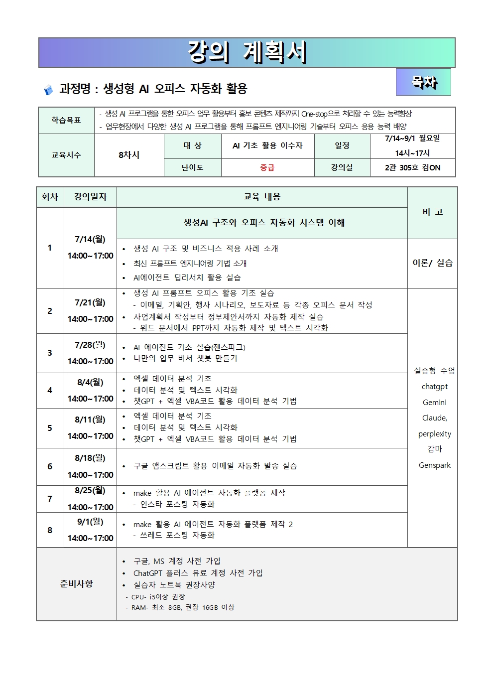 ■ 강의기간 : 25.7.14.~9.1. / 매주 월 총8