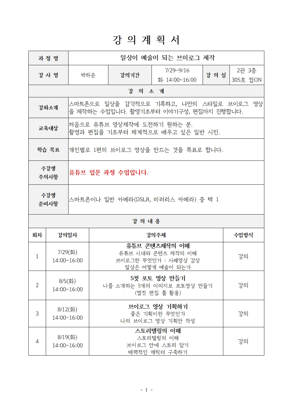 일상이 예술이 되는 브이로그 제작(25년3분기)