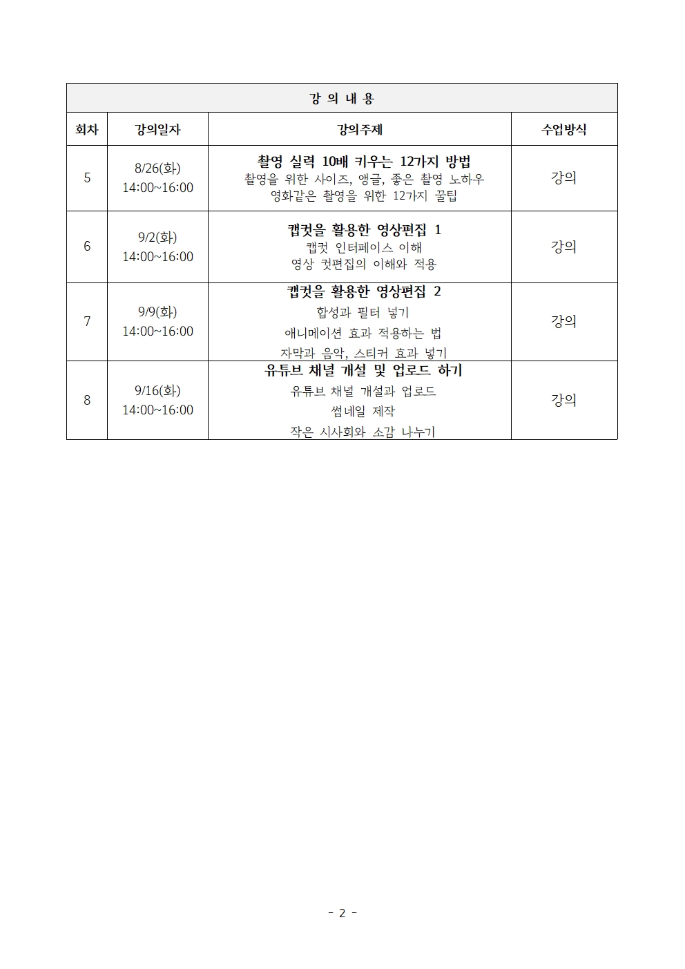 ■ 강의기간 : 25.7.29.~9.16. / 매주 화 총8