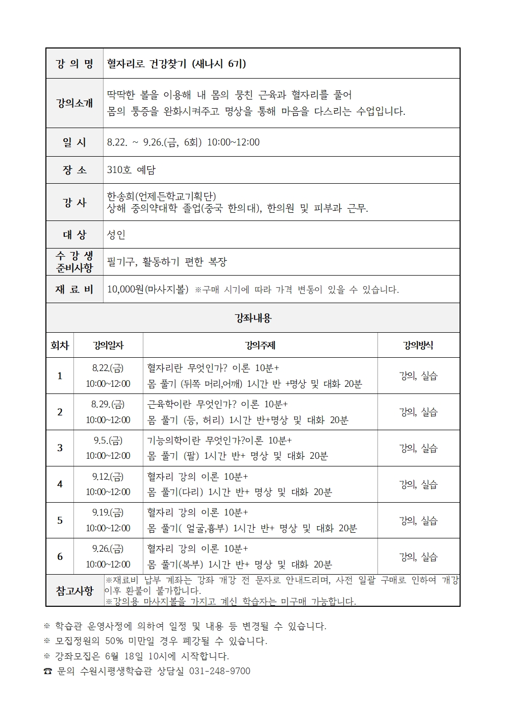 [언제든학교]혈자리로 건강찾기 새나시 6기
