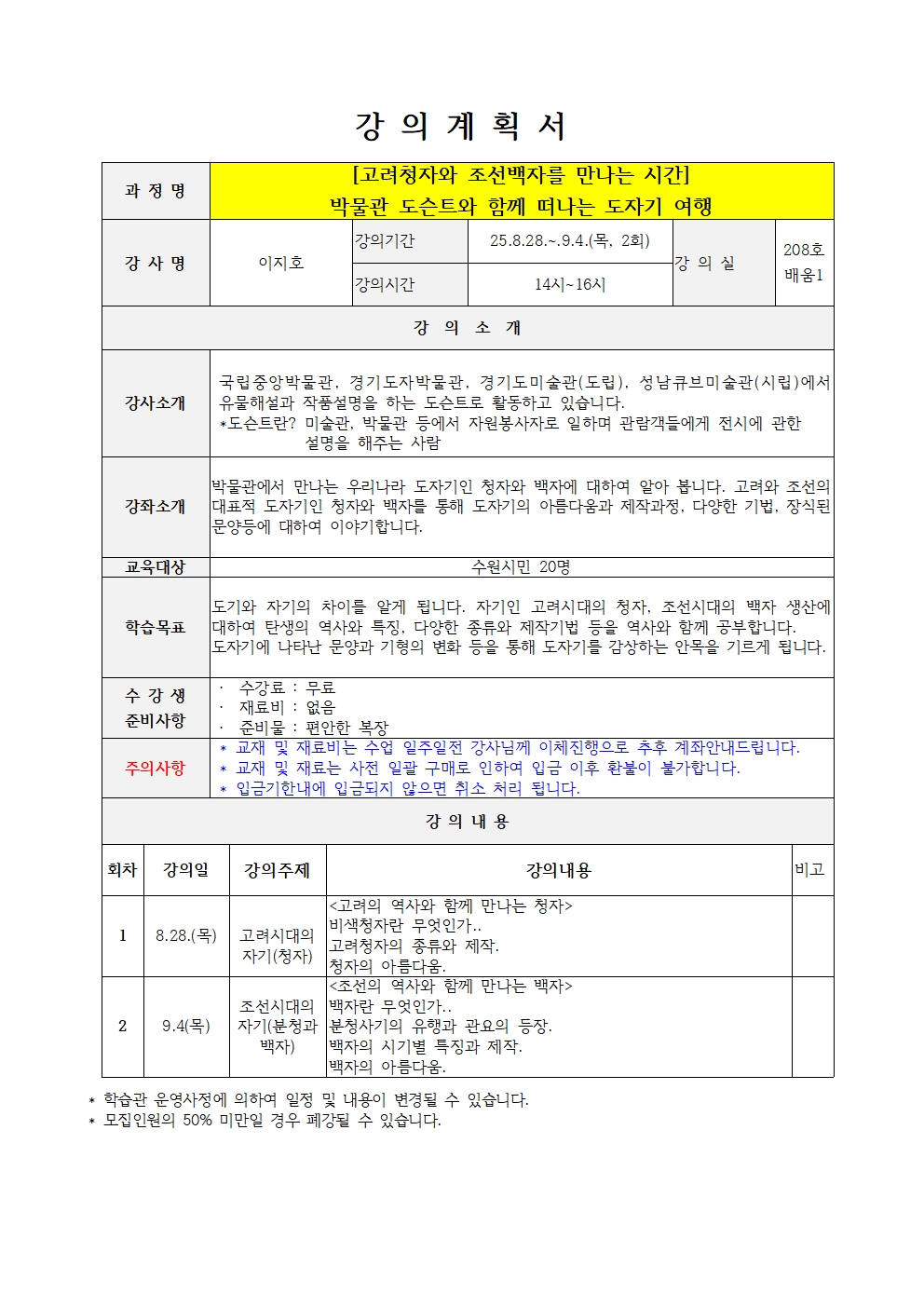 [둘둘셋프로젝트]박물관 도슨트와 함께 떠나는 도자기 여행