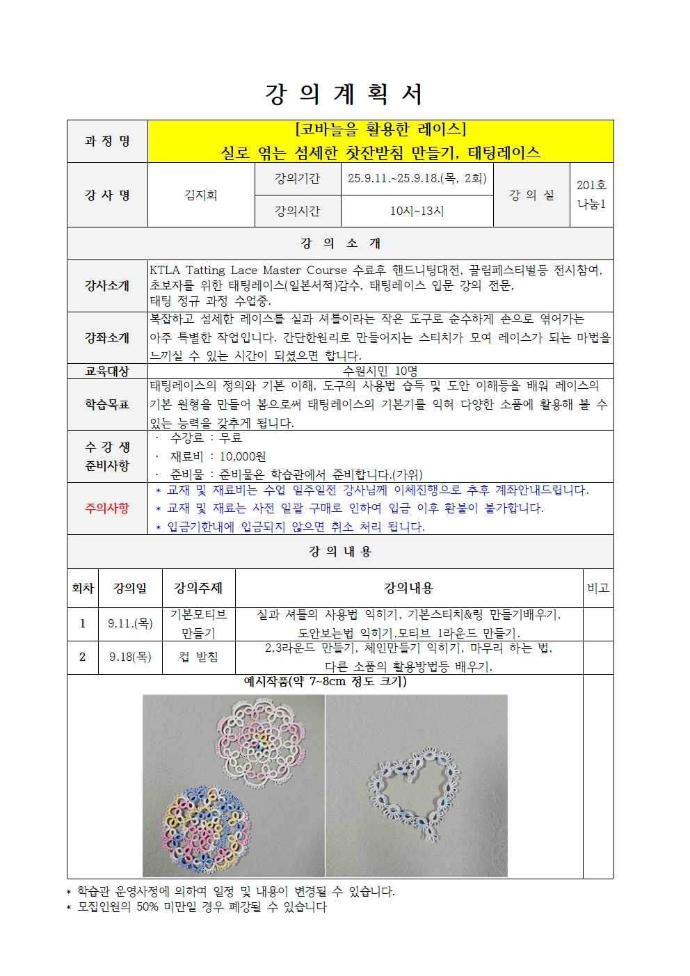 [둘둘셋프로젝트]실로 엮는 섬세한 찻잔받침 만들기, 태팅레이스