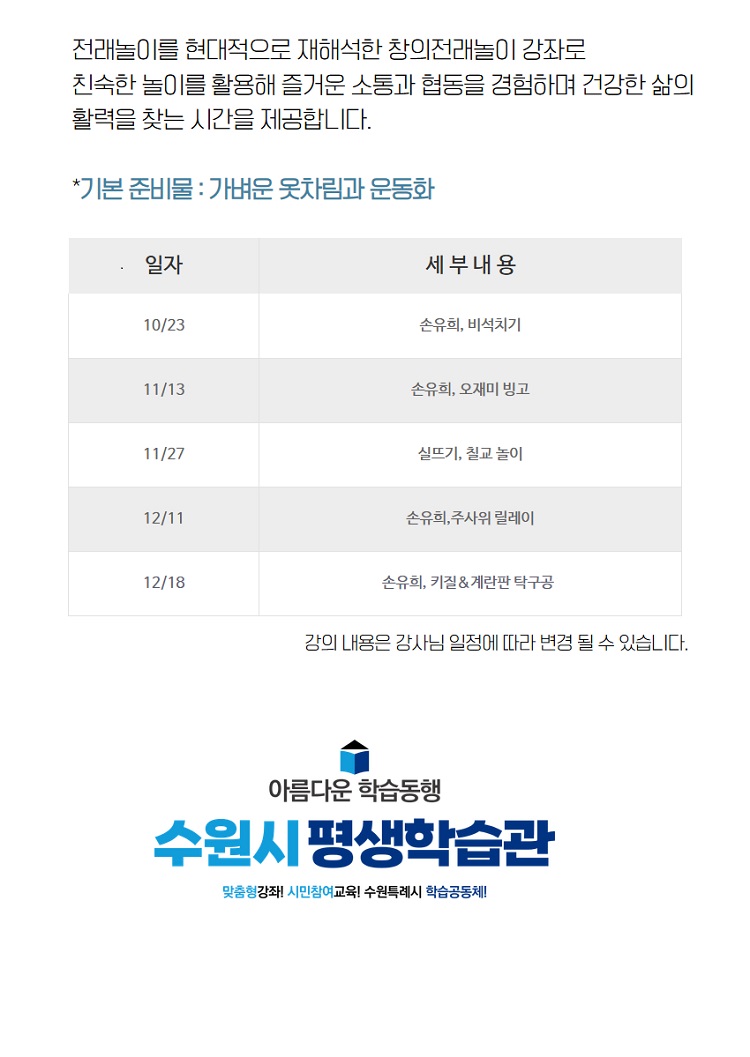 ※ 강좌 모집은 9월 17일 오전 10시부터 시작합니다.