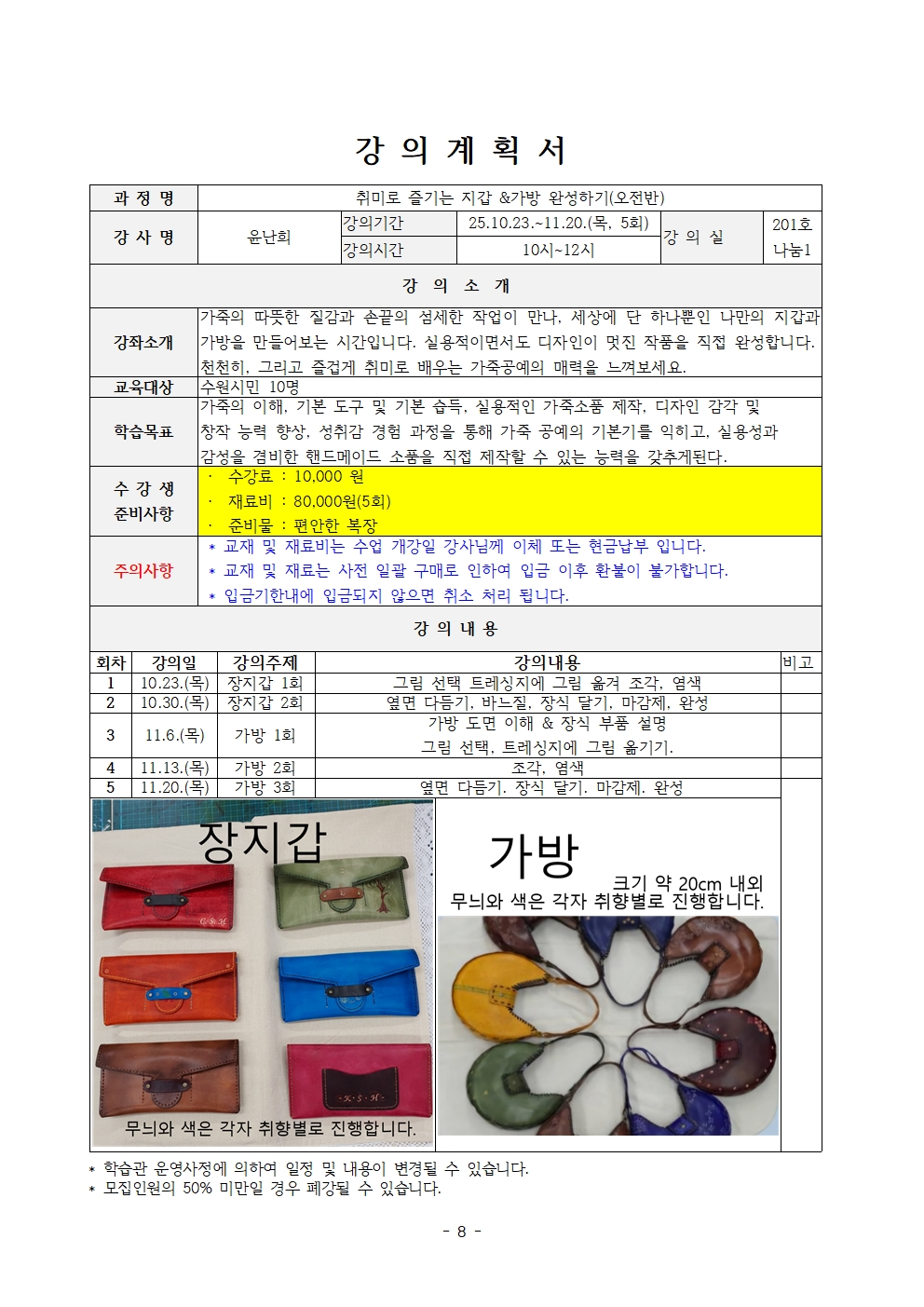 취미로 즐기는 지갑 &가방 완성하기(오전반)-25년 4분기