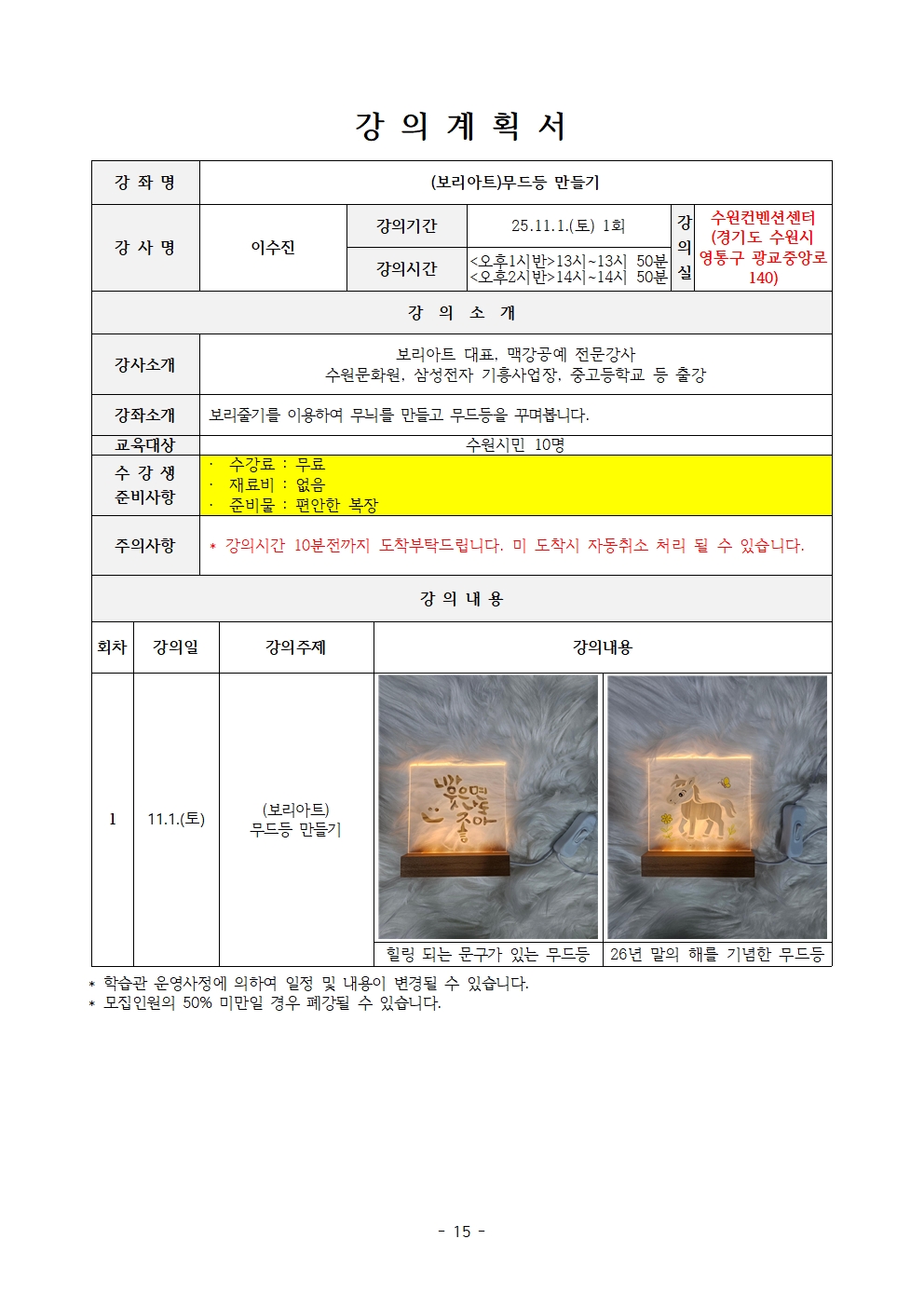 평생학습축제 (보리아트)무드등 만들기 오후1시반 -25년 4분기