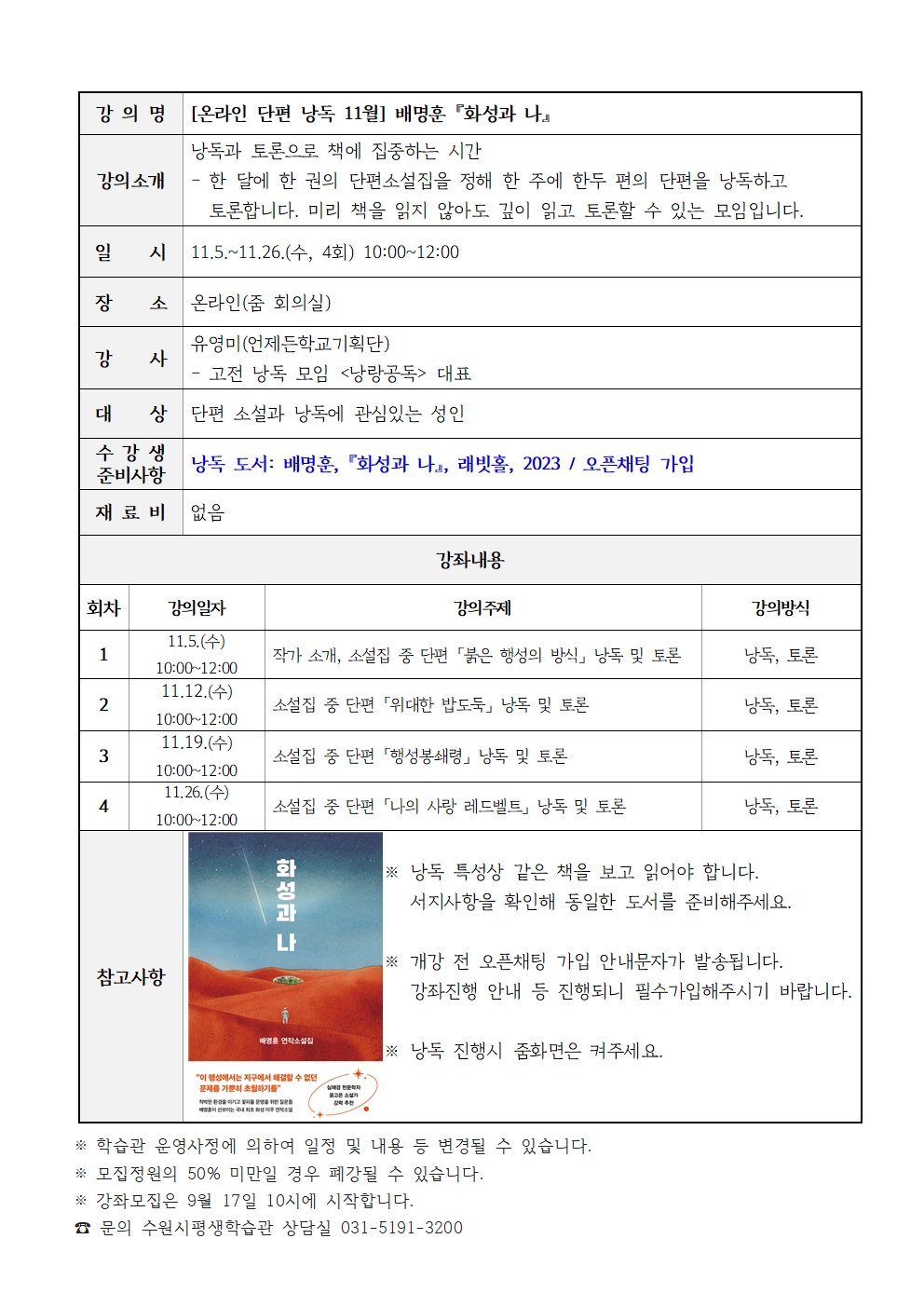[언제든학교]온라인 단편낭독 11월_배명훈「화성과 나」