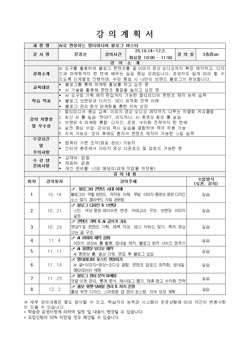 AI로 완성하는 멀티미디어 블로그 마스터(25년 4분기)