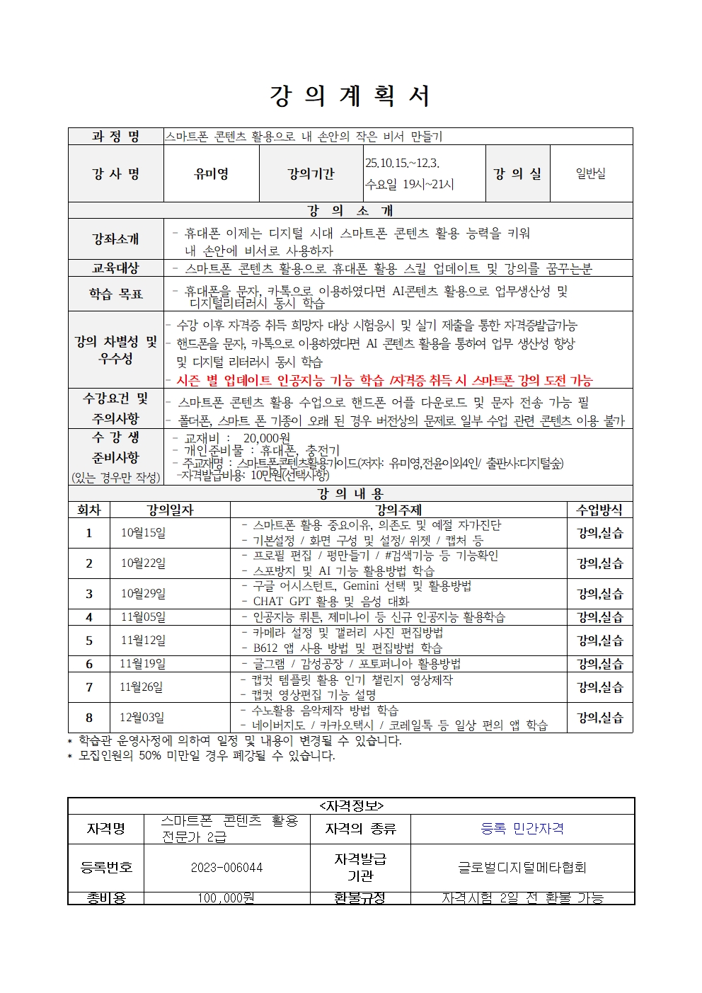 스마트폰 콘텐츠 활용으로 내 손안의 작은 비서 만들기(25년 4분기)