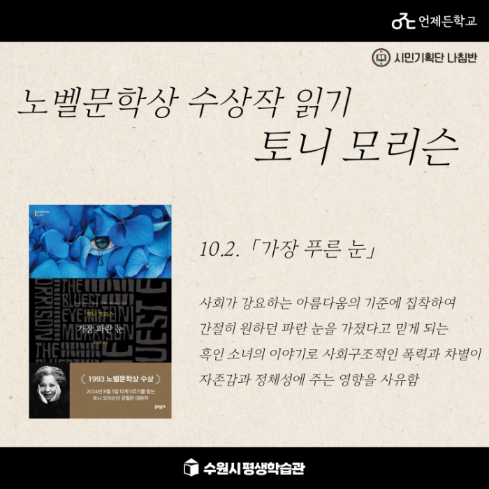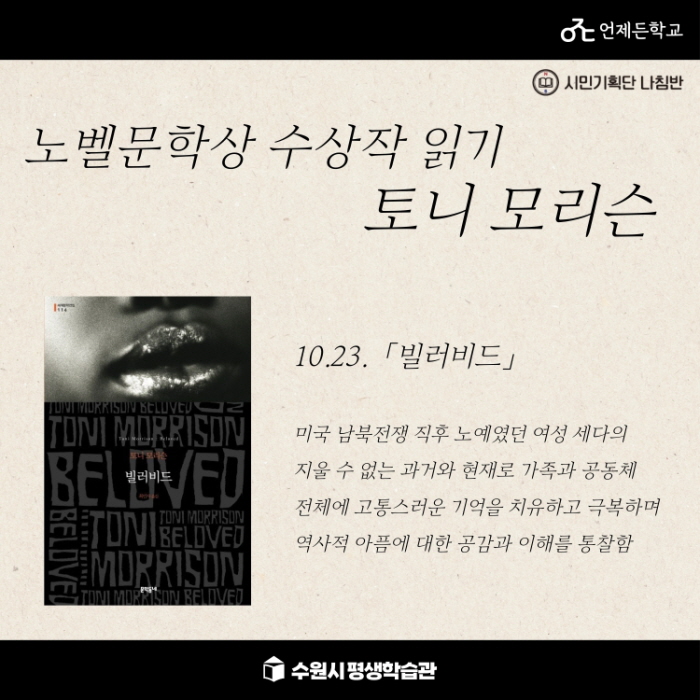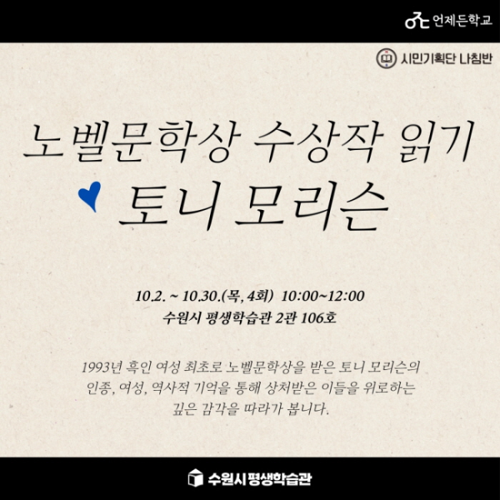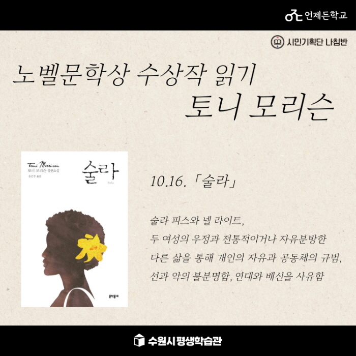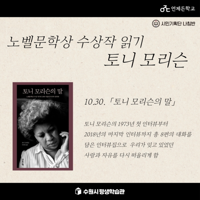 1993년 노벨 문학상 수상자인 토니 모리슨의 소설을 나침반과 함께 읽습니다.