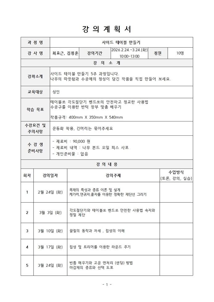 원목 가구 제작의 기초를 다지고 견고한 기술을 배워보세요.