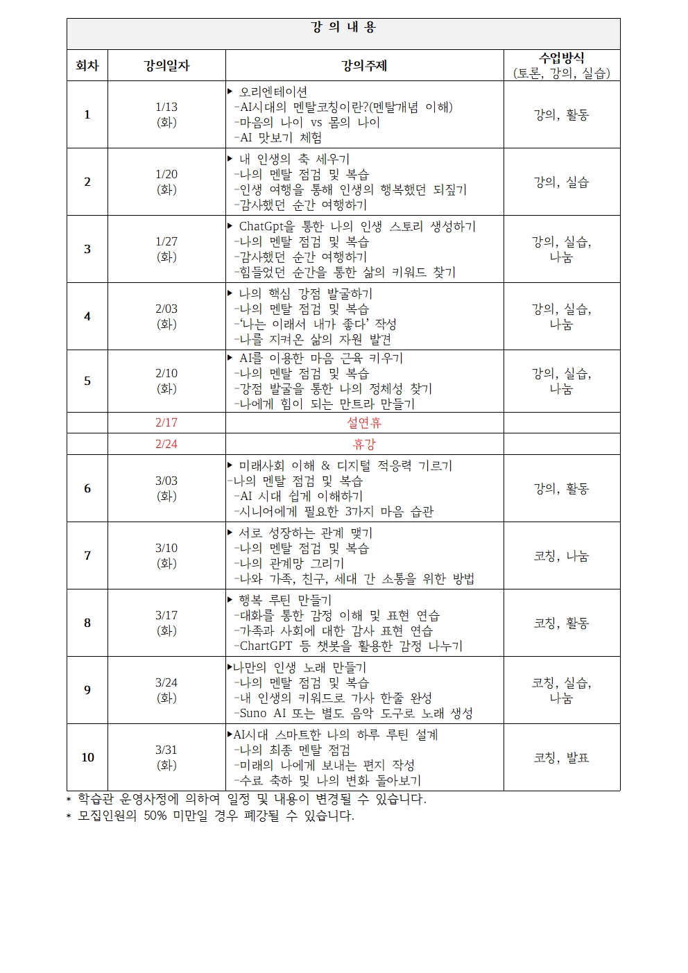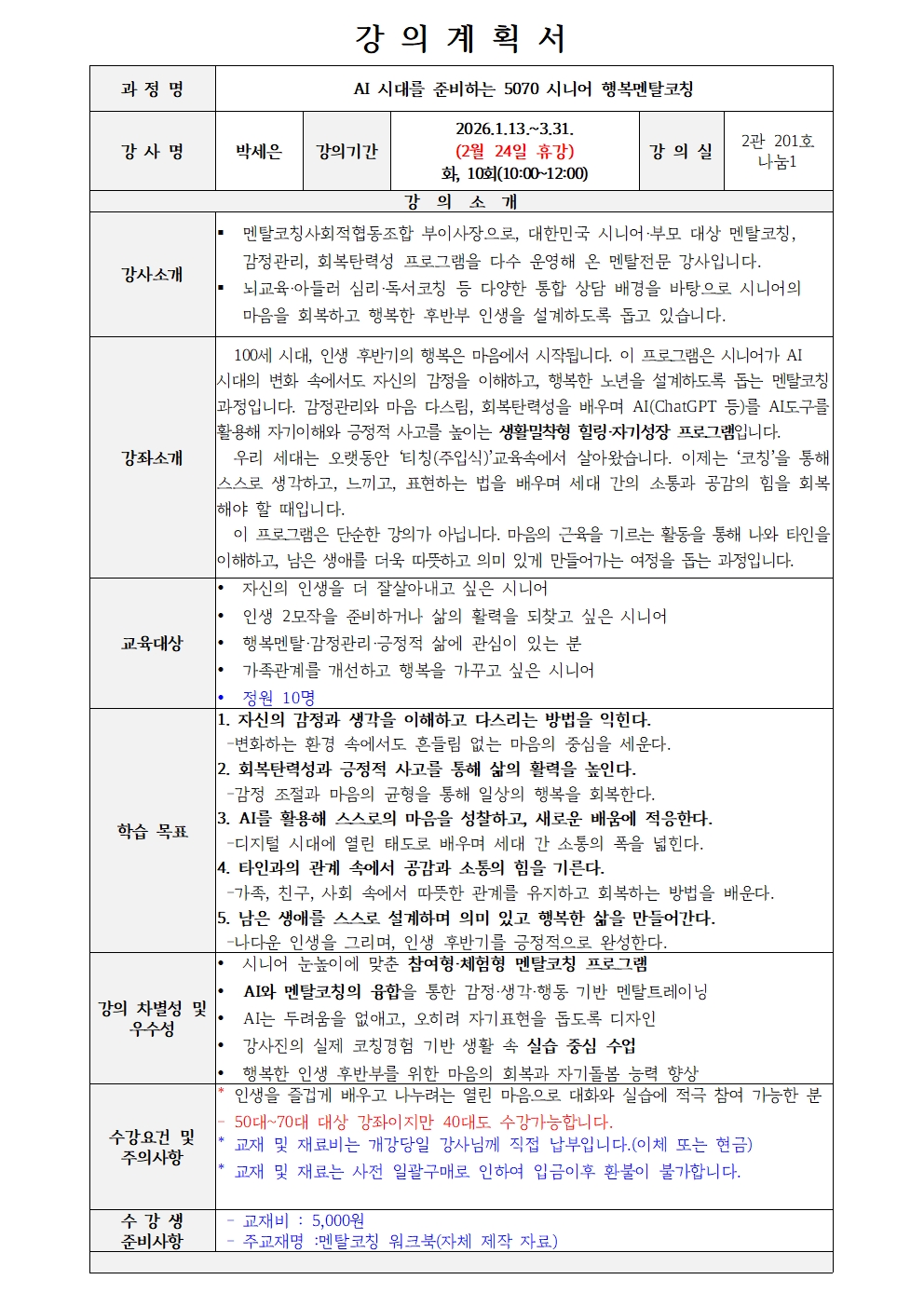 AI 시대를 준비하는 5070 시니어 행복멘탈코칭(26년 1분기)