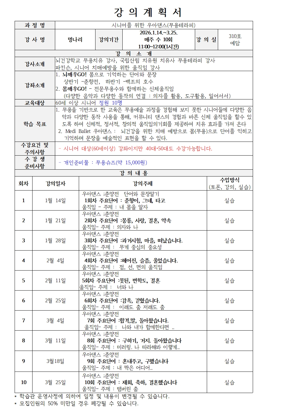 시니어를 위한 우아댄스(무용테라피)_26년 1분기