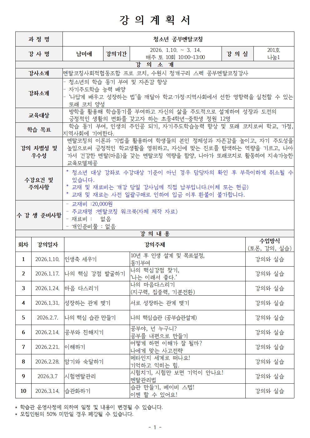 청소년 공부멘탈코칭(26년 1분기)