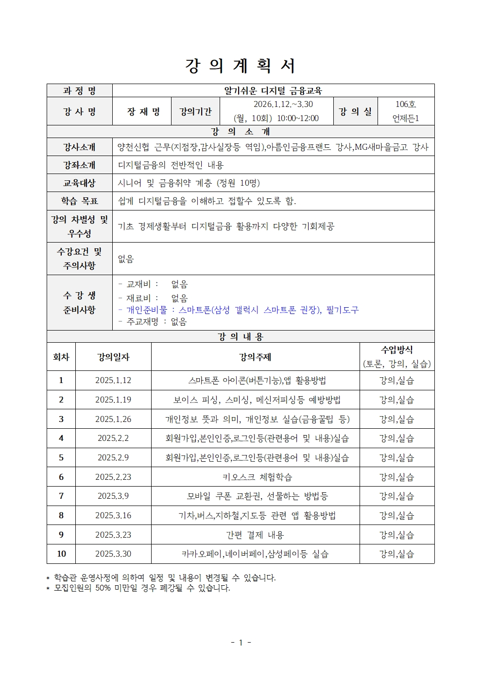 수업 중간 참여는 2회차 시작 전까지만 대기자 접수 순으로 받고 있습니다. 중도에 신청하셔도 수강료 및 교재비, 재료비는 처음과 동일합니다.