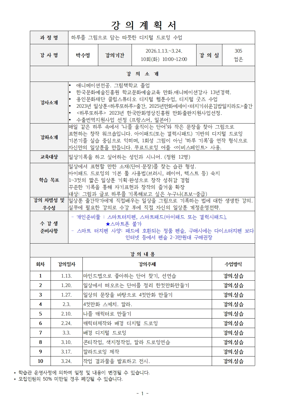 하루를 그림으로 담는 따뜻한 디지털 드로잉 수업(26년 1분기)