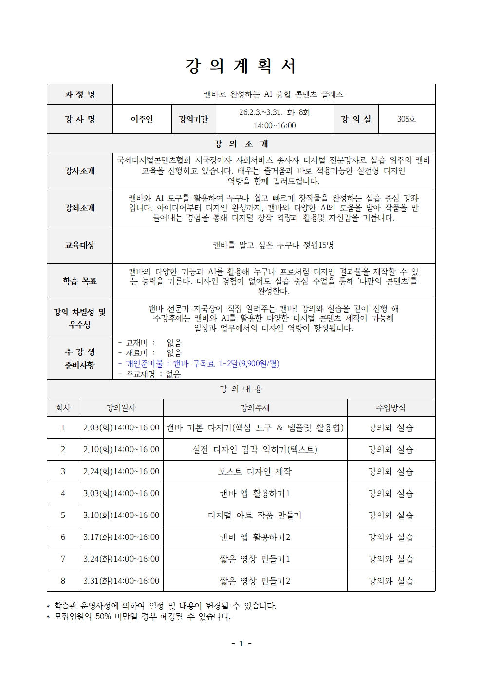 캔바로 완성하는 AI 융합 콘텐츠 클래스(26년 1분기)
