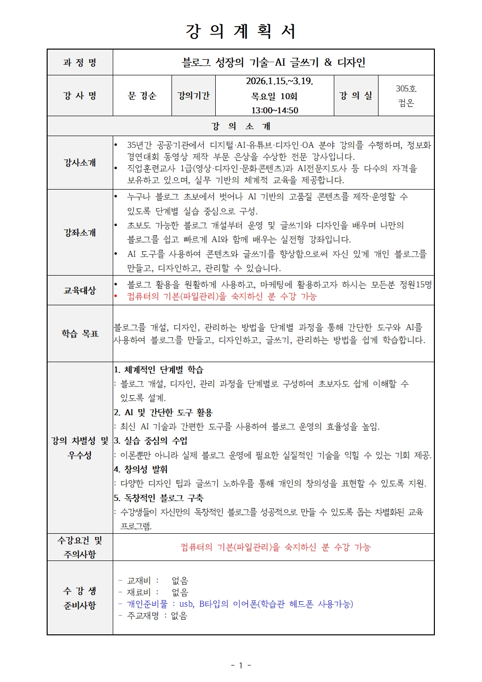 블로그 성장의 기술-AI 글쓰기 & 디자인(26년 1분기)