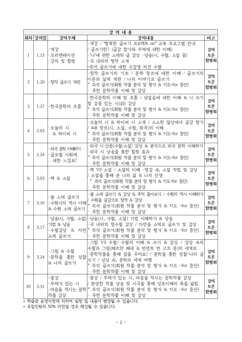 (오전반)서종남교수의 문학아카데미 ‘행복한 글쓰기 프로젝트 on!’_26년 1분기