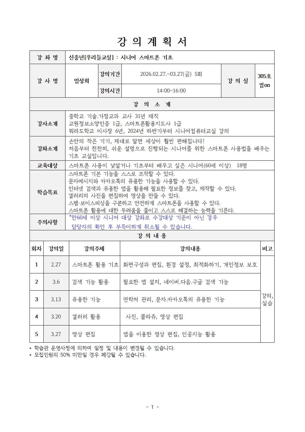 신중년[우리들교실] : 시니어 스마트폰 기초(26년 1분기)