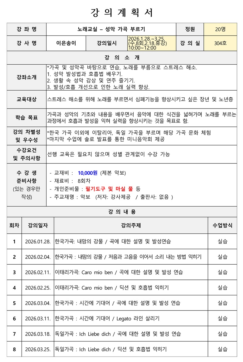노래교실 – 성악 가곡 부르기