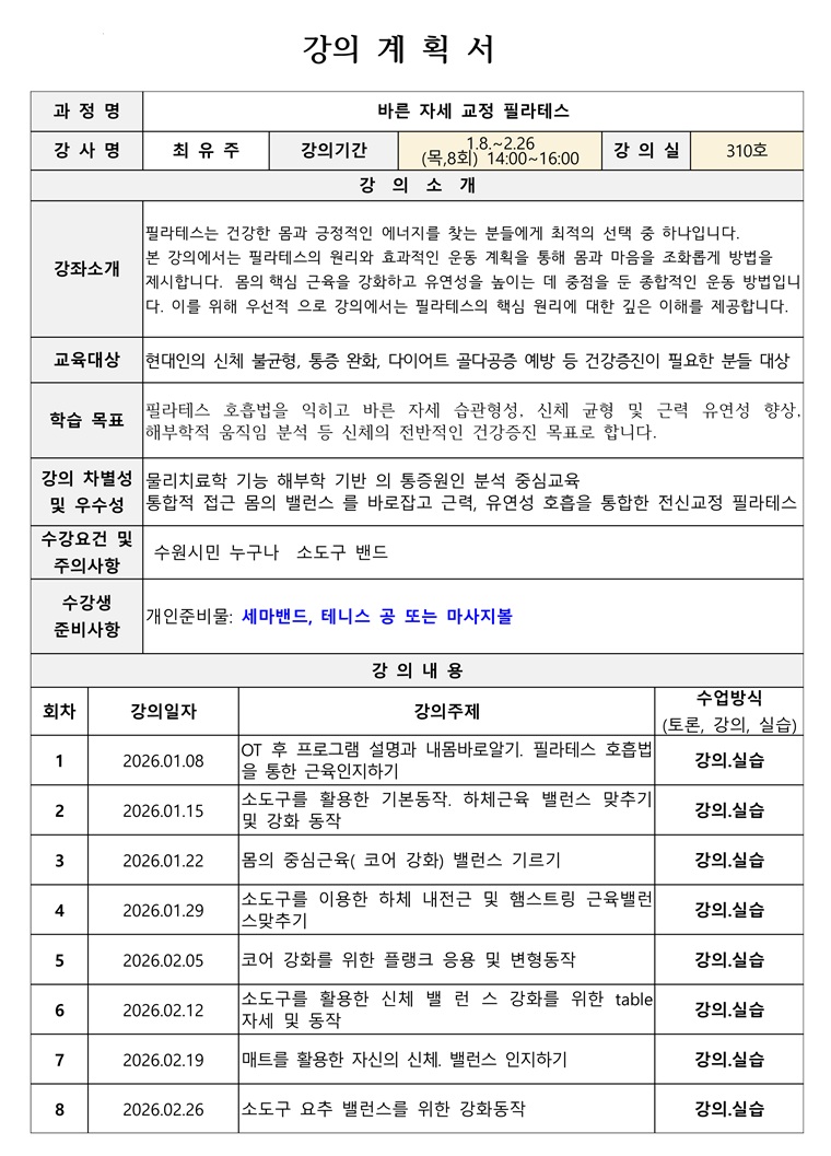 통증 완화, 자세 교정 필라테스