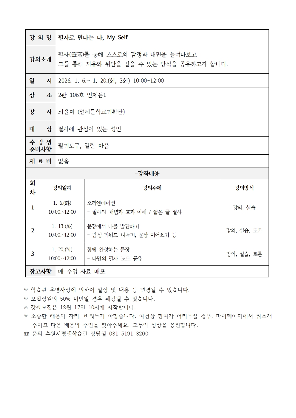 문의 수원시평생학습관 상담실