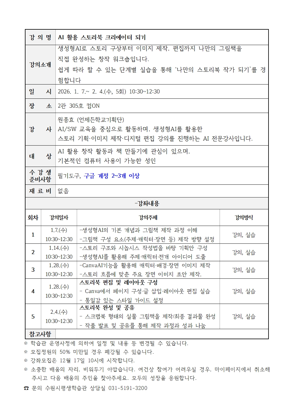 문의 수원시평생학습관 상담실