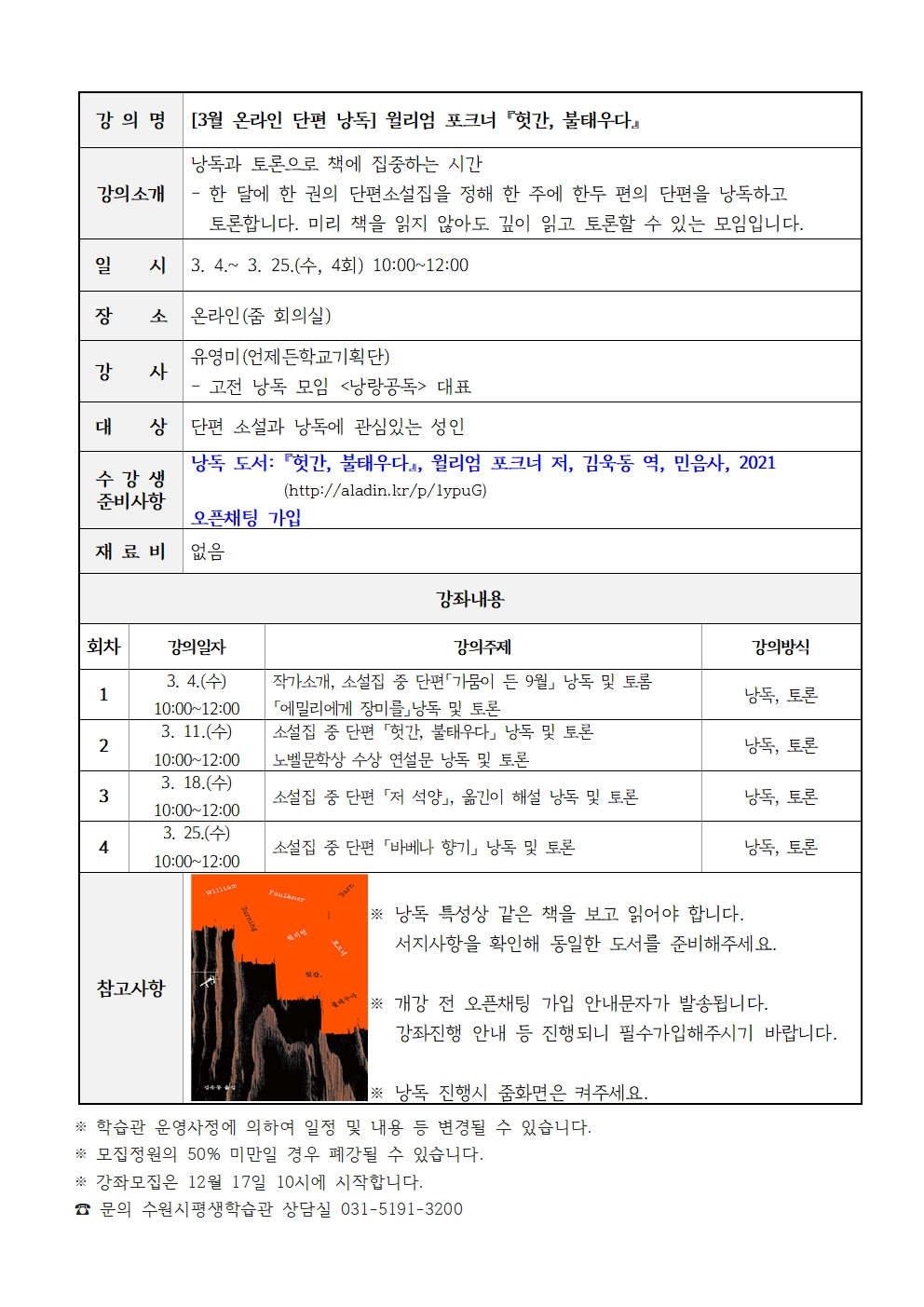 [언제든학교] 3월 온라인 단편낭독 윌리엄 포크너 「헛간, 불태우다」