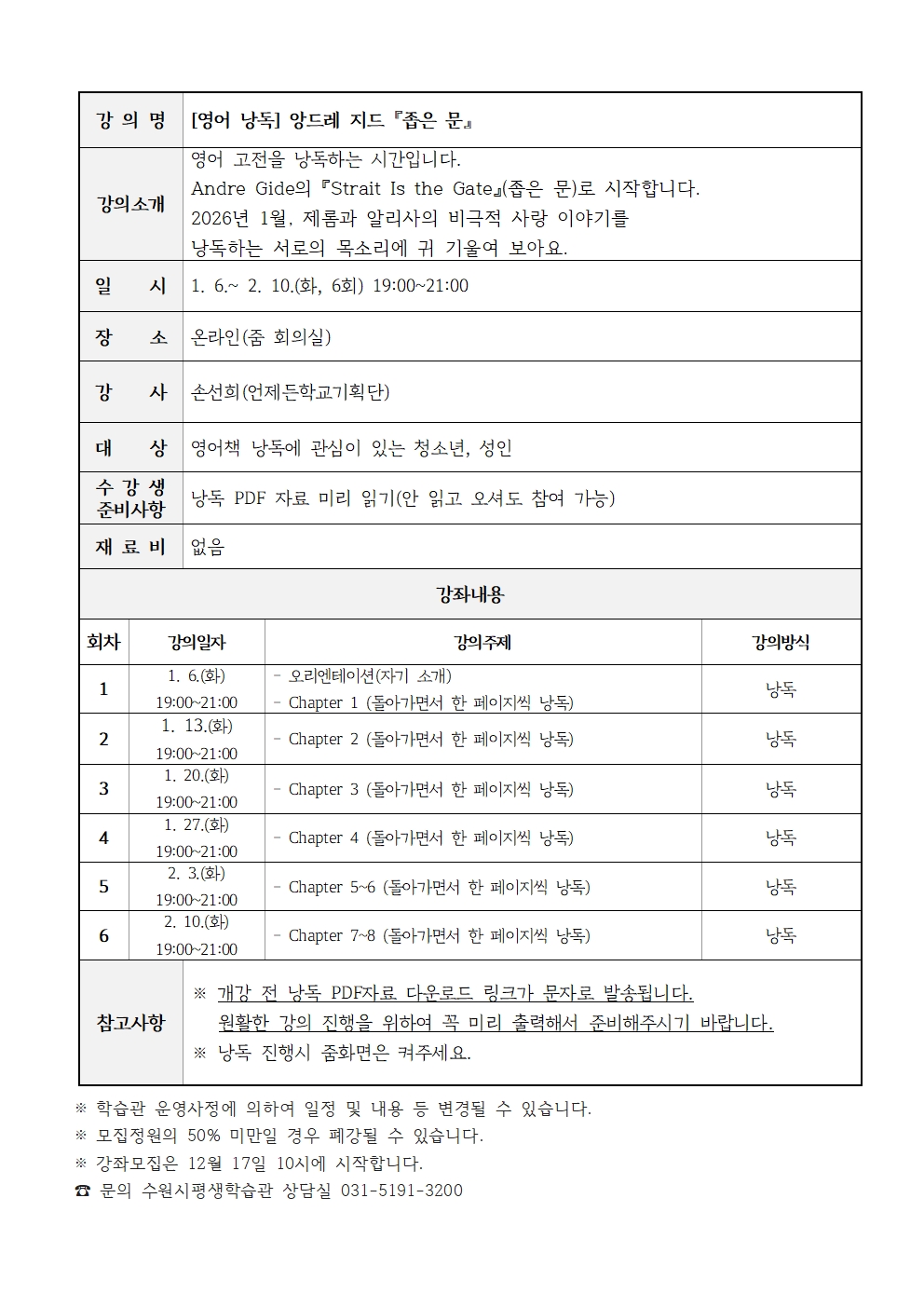 [언제든학교] 영어 낭독 앙드레 지드 「 좁은 문」