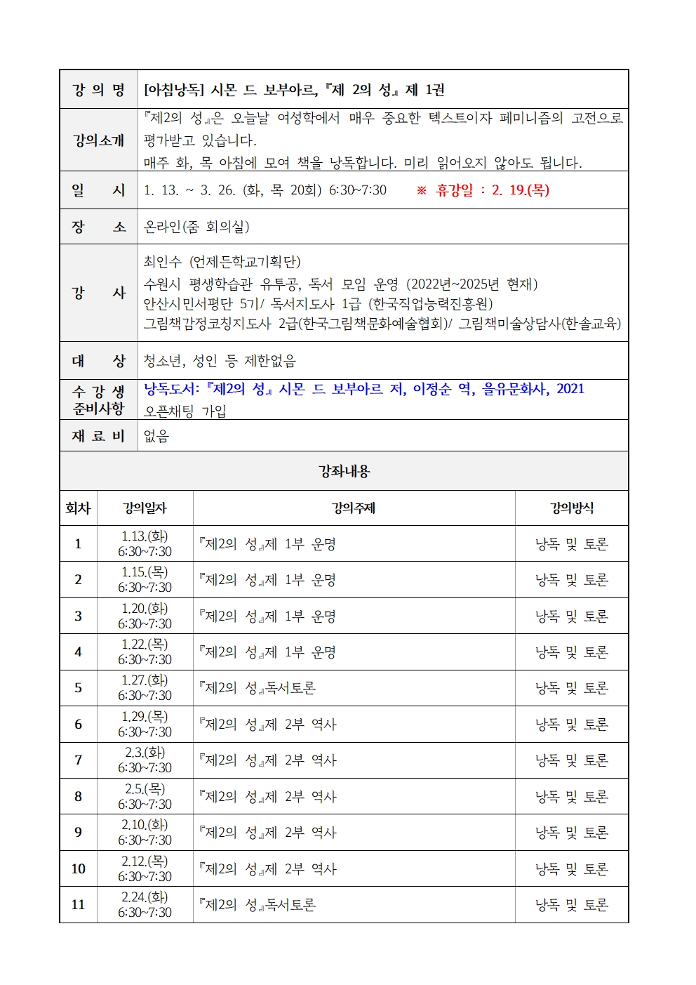 [언제든학교][아침낭독] 시몬 드 보부아르, 「제 2의 성」 제 1권