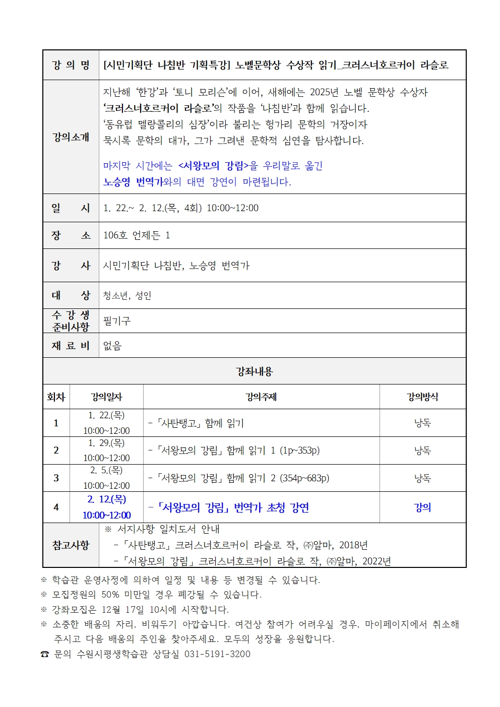 [시민기획단 나침반 특강] 노벨문학상 수상작 읽기_크러스너호르커이 라슬로