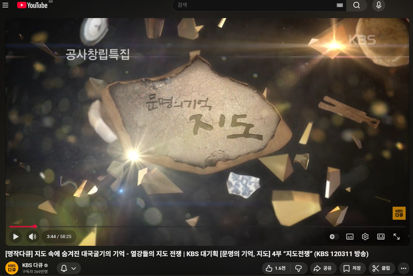 <문명의 기억, 지도> 4부작을 시청합니다.