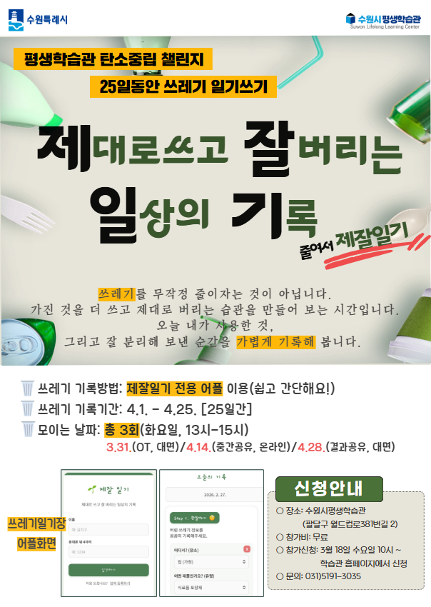 제잘일기 전용 어플을 이용하여 25일동안 내가 버린 쓰레기를 기록하고 탄소중립 실천에 대해 고민해봅니다.