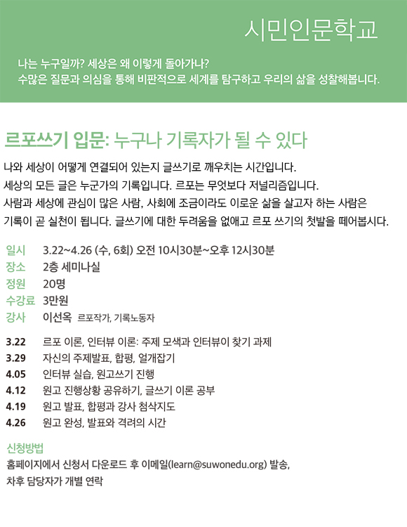 [시민인문학교] 르포쓰기 입문: 누구나 기록자가 될 수 있다