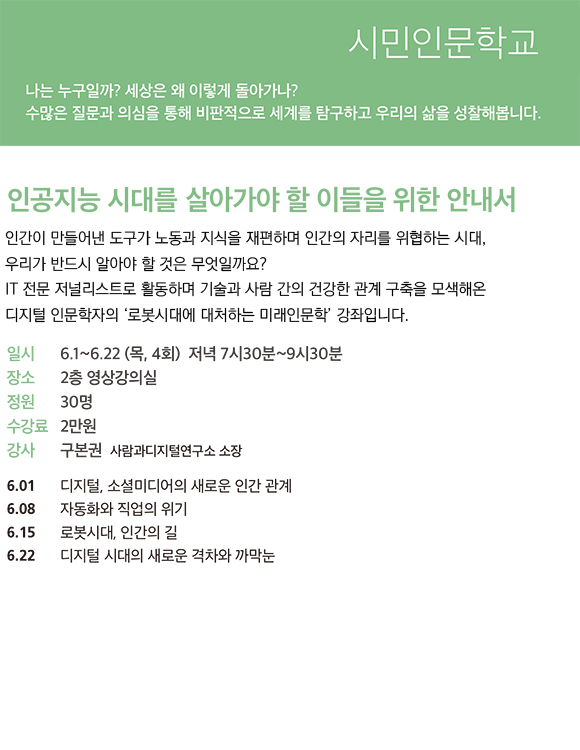 [시민인문학교] 인공지능 시대를 살아가야 할 이들을 위한 안내서