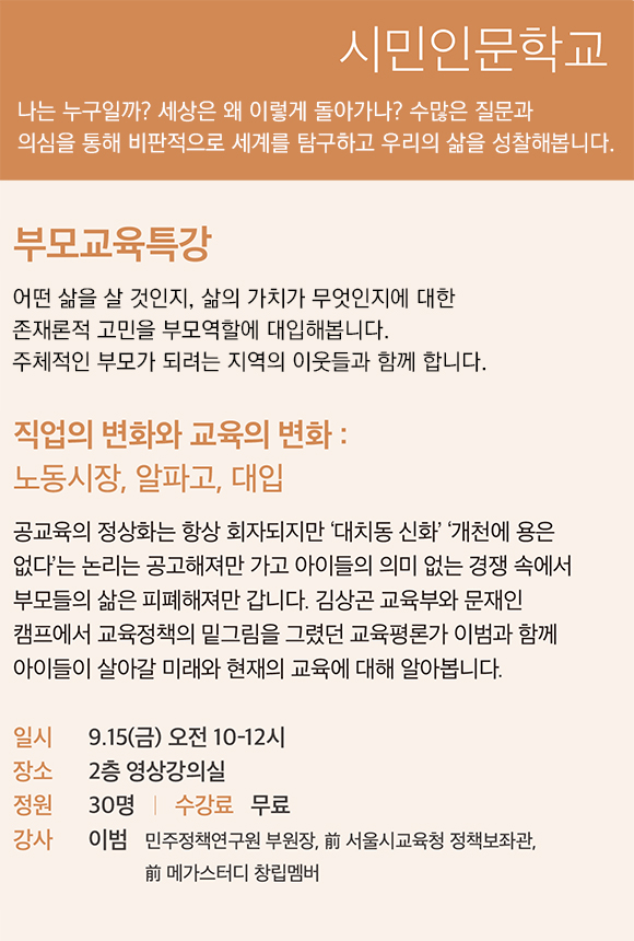 강사: 이범 (민주정책연구원 부원장, 前 서울시교육청 정책보좌관, 前 메가스터디 창립멤버)