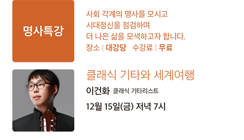 클래식 기타와 세계여행이건화 클래식 기타리스트12월 15일(금) 저녁 7시