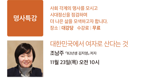 [11월 명사특강] 대한민국에서 여자로 산다는 것