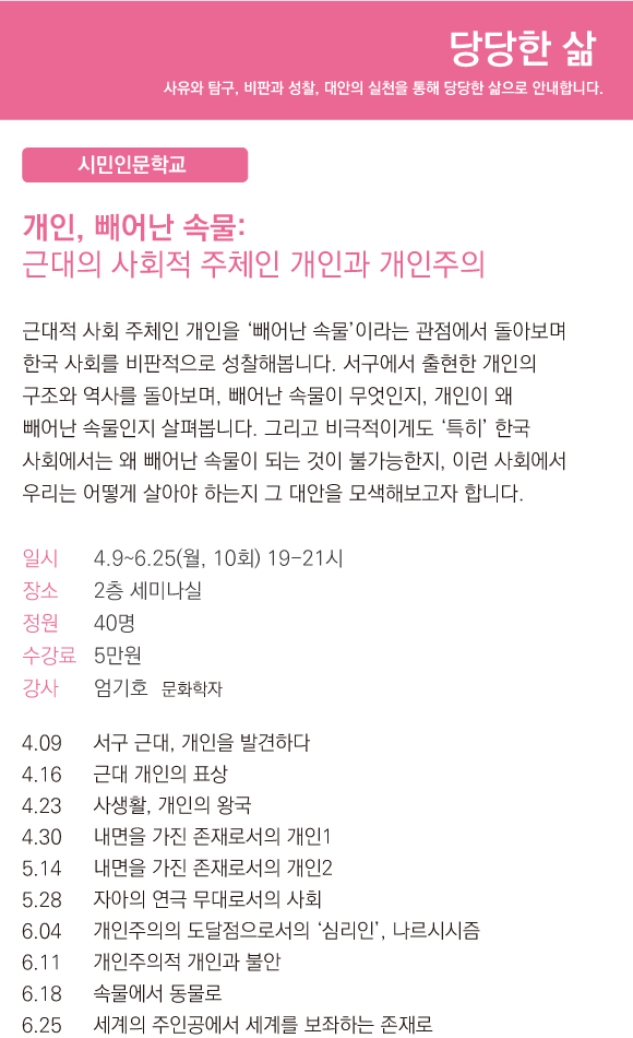 개인, 빼어난 속물 – 근대의 사회적 주체인 개인과 개인주의에 대한 강의