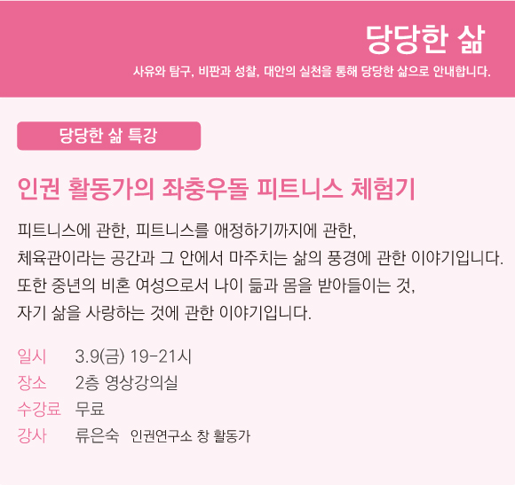 [당당한 삶 특강] 인권 활동가의 좌충우돌 피트니스 체험기