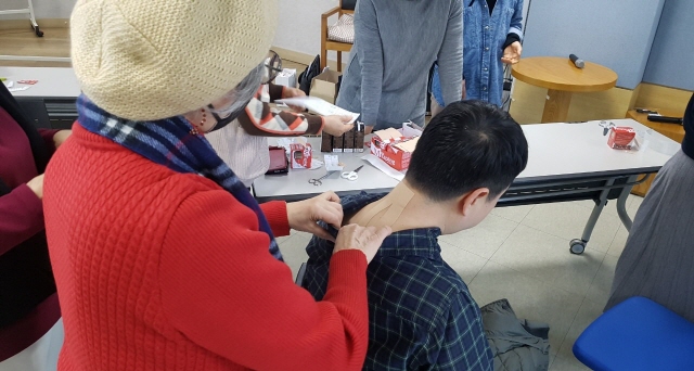 2번에 걸쳐 근처 노인정에서 진행하였으며 1월에는 학습관을 방문하는 학습자들을 상대로 테이핑 봉사를 진행하였습니다.