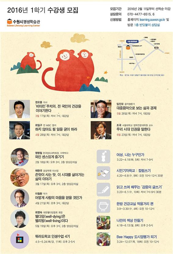 수원시평생학습관 2016년도 1학기 수강생 모집