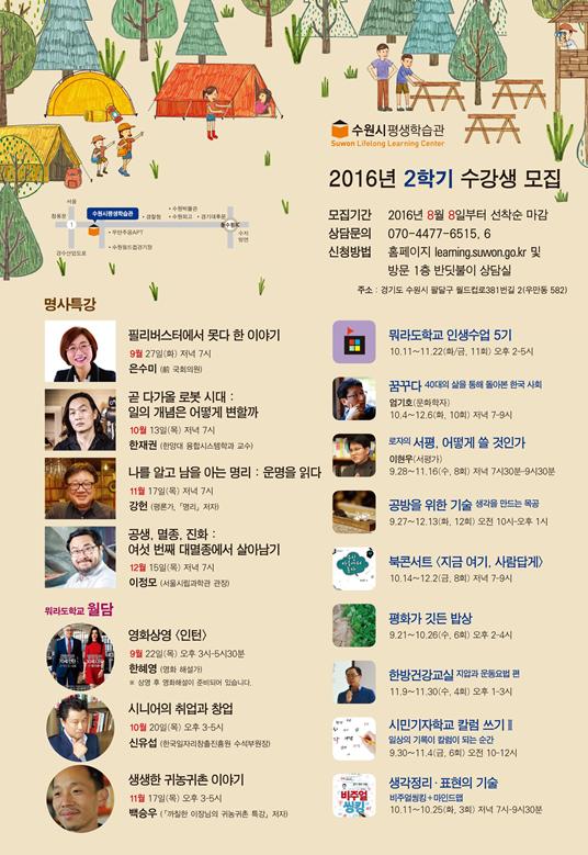 [배포] 16.08.10 수원시평생학습관 2016년 2학기 수강생 모집